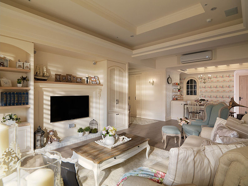 嵌入式空調(diào)的設(shè)計使得壁掛機顏值頓時升高一大截。層高較高的房子多級吊頂做出了空間的層次感。