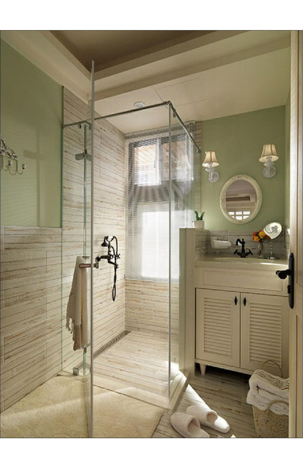 衛(wèi)生間同樣為暖色系,淋浴房地漏的設(shè)計使得在使用時腳下不會積水。