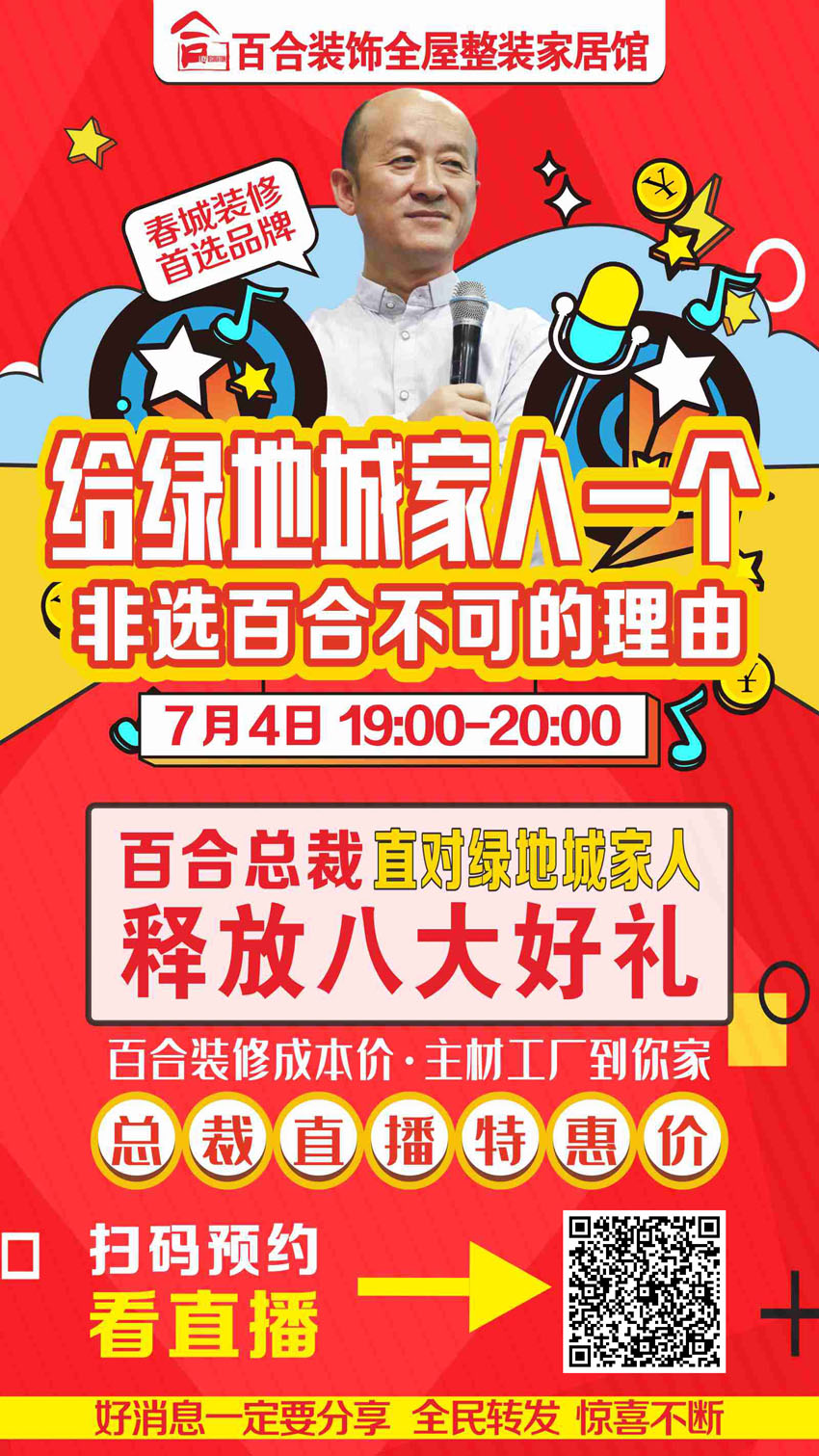7月4號(hào)百合裝飾 總裁直播 綠地城小區(qū)專場福利團(tuán)購活動(dòng)!