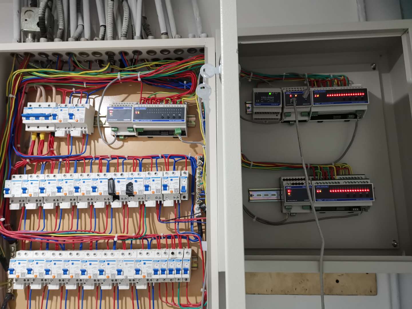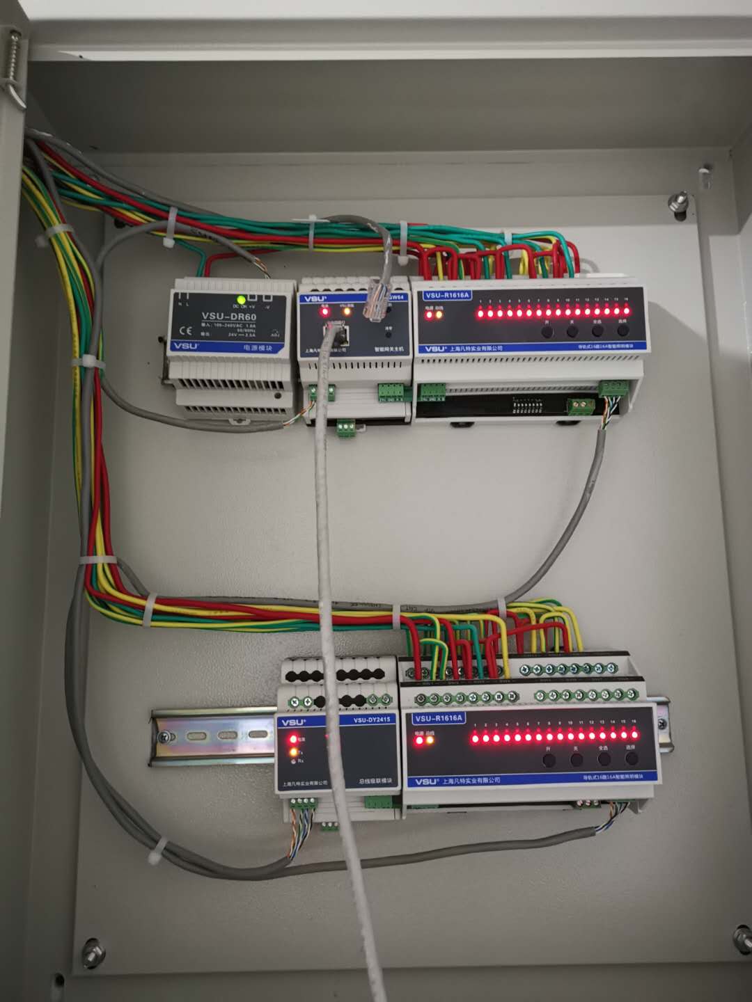 采用VSU總線型成套產(chǎn)品:智能網(wǎng)關(guān)主機(jī)控制整體,接受到手機(jī)或面板的指令輸送到開關(guān)執(zhí)行模塊進(jìn)行遠(yuǎn)程開關(guān)燈操作,采用的照明模塊是16路16A的,搭配DR60電源模塊、級(jí)聯(lián)模塊確保供電充沛。總線的特點(diǎn)是連產(chǎn)品的調(diào)試檢測都不需要到現(xiàn)場,遠(yuǎn)程即可將其調(diào)試就位。這個(gè)項(xiàng)目甚至連我司技術(shù)人員遠(yuǎn)程協(xié)助都不需要自己就安裝完成,可見其有多便于安裝,加上連接片用于串聯(lián)模塊,不是專業(yè)人員也可自主安裝使用。
