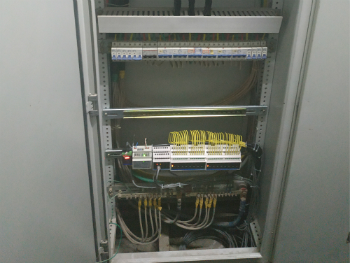 該項(xiàng)目采用了VSU總線系列的網(wǎng)關(guān)主機(jī)模塊、電源模塊、級(jí)聯(lián)模塊、4路、8路、12路、16路開關(guān)執(zhí)行模塊、連接片及另附邏輯主機(jī)、溫度傳感器。232串口模塊收集周圍溫度信息,發(fā)送信息到網(wǎng)關(guān)主機(jī)至邏輯主機(jī),通過(guò)邏輯主機(jī)內(nèi)設(shè)置的溫度開關(guān)范圍,再發(fā)送指令至網(wǎng)關(guān)主機(jī)實(shí)現(xiàn)空調(diào)開關(guān)。