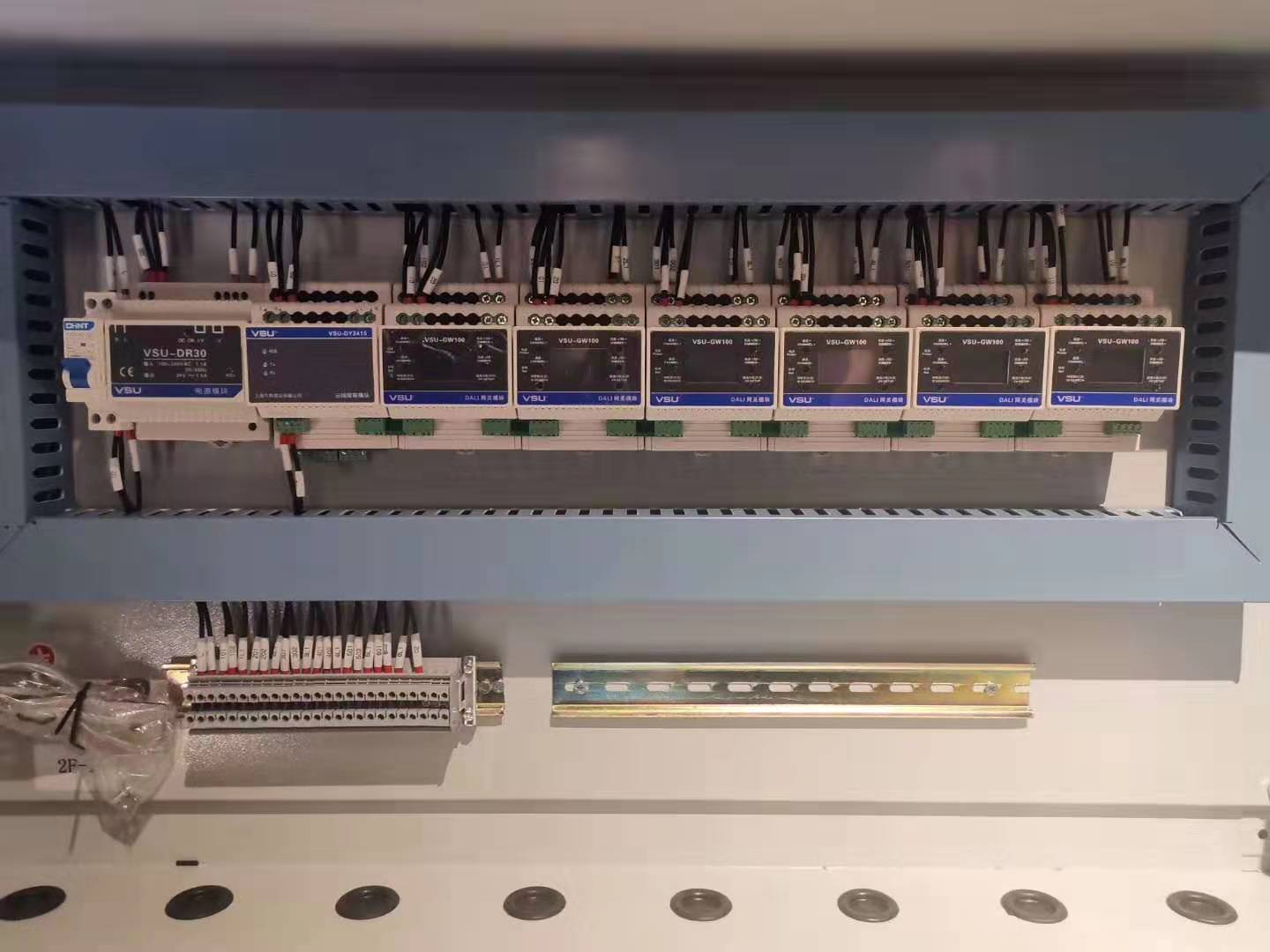 該項(xiàng)目采用VSU總線型智能照明控制系統(tǒng),在我司調(diào)試人員抵達(dá)現(xiàn)場后,現(xiàn)場環(huán)境勘察、走線情況摸底、設(shè)備點(diǎn)位確認(rèn)、現(xiàn)場設(shè)備檢查、設(shè)備強(qiáng)電回路接線檢查、設(shè)備通訊接線檢查、上電測試燈具、系統(tǒng)通訊測試、軟件測試通訊、控制需求確認(rèn)、場景控制是否達(dá)到控制效果、調(diào)試驗(yàn)收等環(huán)節(jié)全部完成后才算完工。