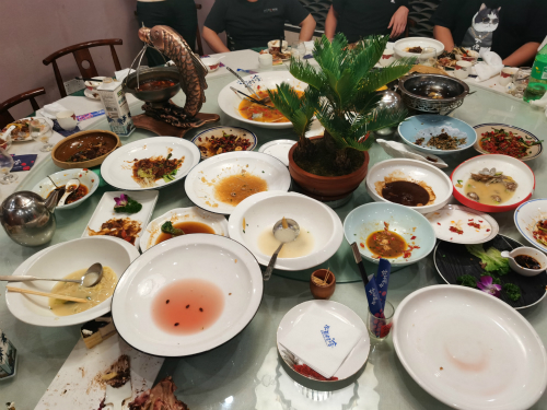 在推上蛋糕,唱完生日歌,送上祝福,人人酒足飯飽之后,才發(fā)現(xiàn)團建活動來到了最高潮——小游戲。一個考驗反應(yīng)力、專注力的小游戲,做錯或者沒反應(yīng)過來的人都得接受旁邊人幫自己夾的“一口”菜。真是一口還是半碗,小編就不說了,下面的圖片表明了事情的結(jié)果。