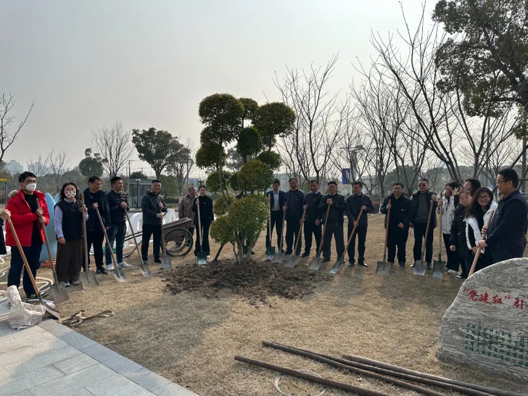 一塊鐫刻著“黨建紅引領(lǐng)生態(tài)綠”以及五個(gè)黨支部名字石碑矗立在新栽苗木旁邊,這塊石碑不僅是對(duì)我們植樹(shù)活動(dòng)的見(jiàn)證,更是對(duì)黨建引領(lǐng)綠色發(fā)展理念的傳承與弘揚(yáng)。它象征著五個(gè)黨支部在黨建紅的引領(lǐng)下,攜手并進(jìn),共同書(shū)寫(xiě)綠色發(fā)展的新篇章。