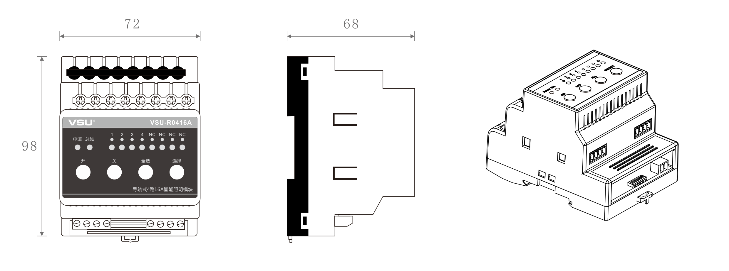 1,標準導(dǎo)軌式安裝占4個模數(shù)位;